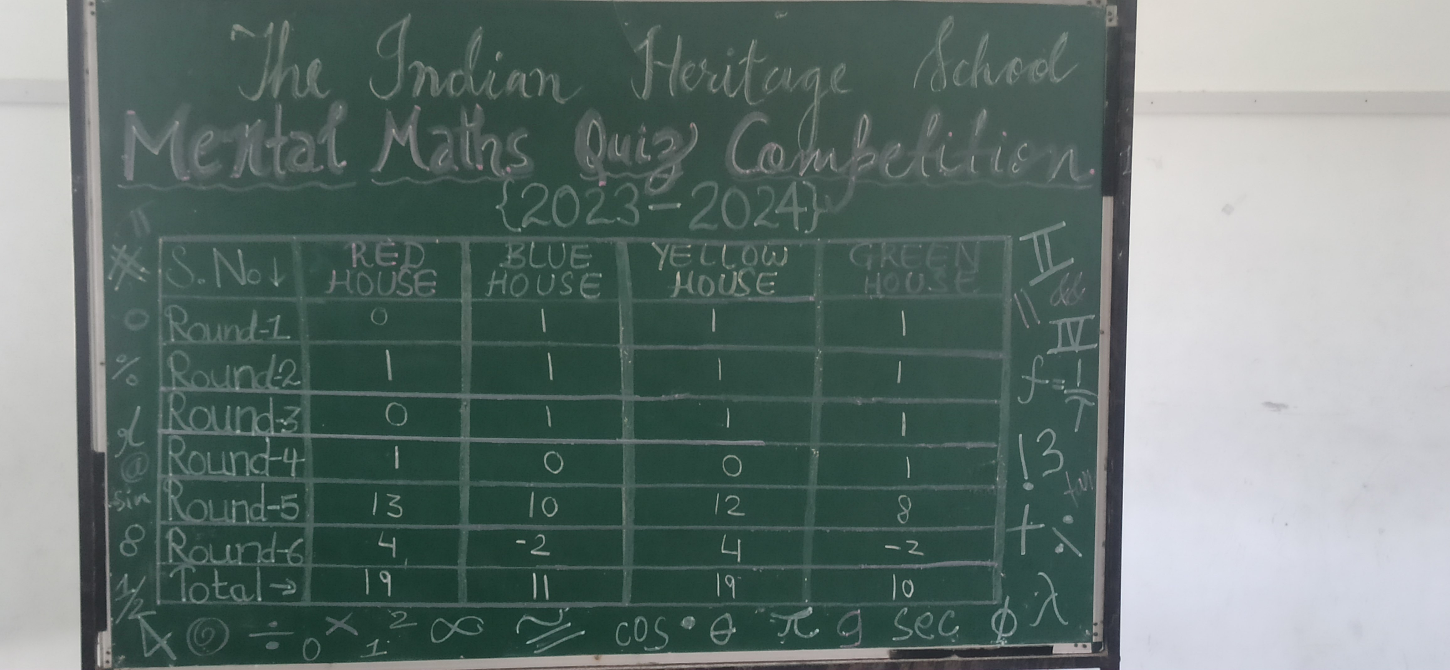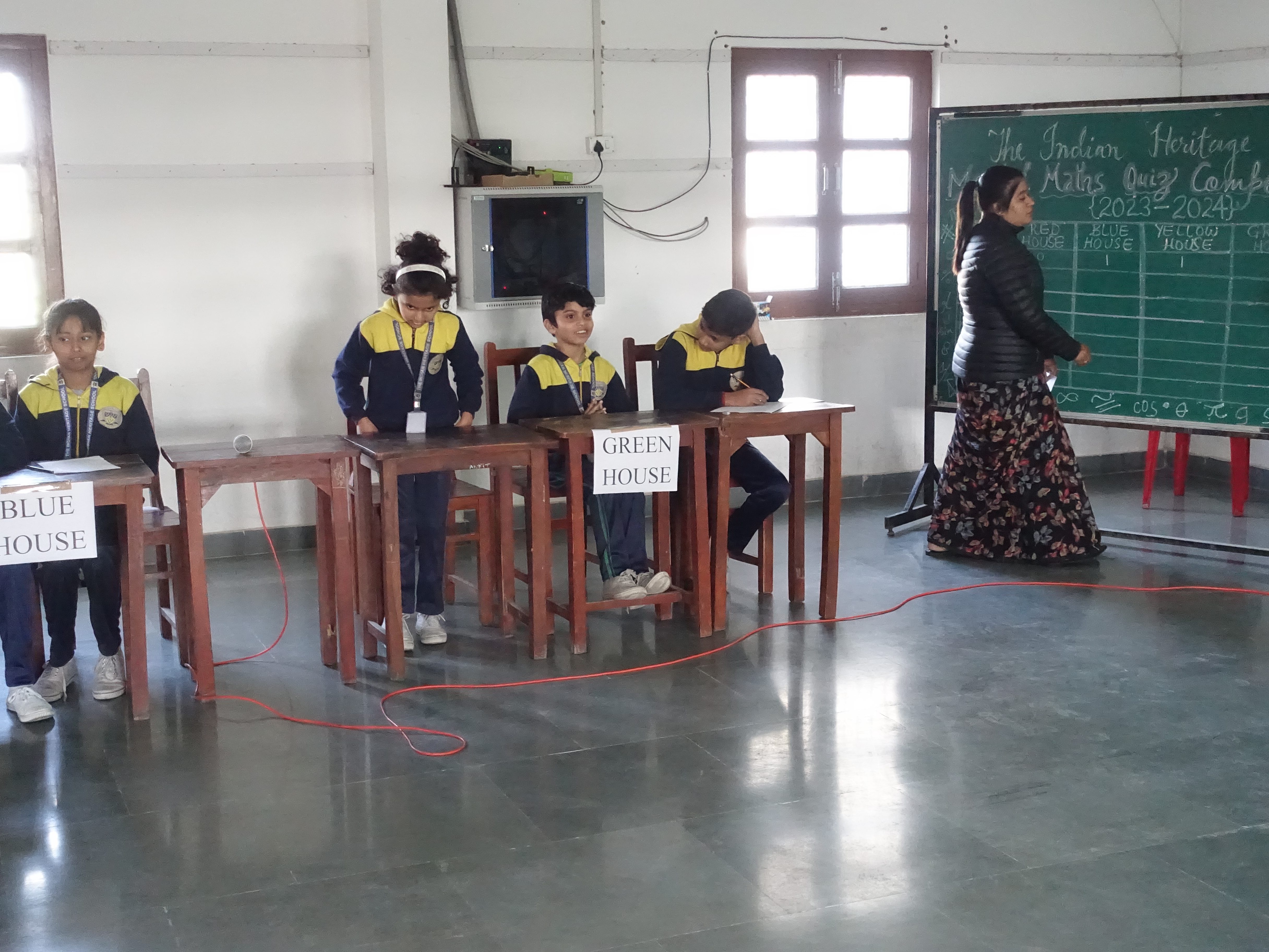 Maths Quiz Competition was organised today i.e. Friday 09/02/2024 in The Indian Heritage School for classes III to V. Participants were tested in different rounds based on Numbers, Unitary Method, Geometry, Patterns etc. Teams of all the four houses performed well and showed their knowledge and understanding about their mathematical concepts and calculations.