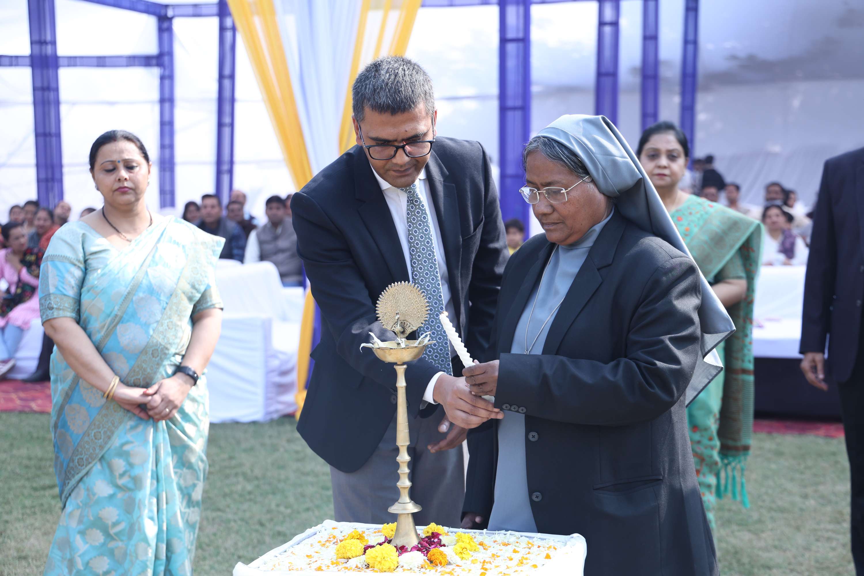 The Programme began with the welcome ceremony of the chief guest Sister Jean Thomas, Principal of St. Mary's convent school followed by Lighting of the Lamp by the chief guest and Prayer by the Principal Mr. Rajan Marwah.