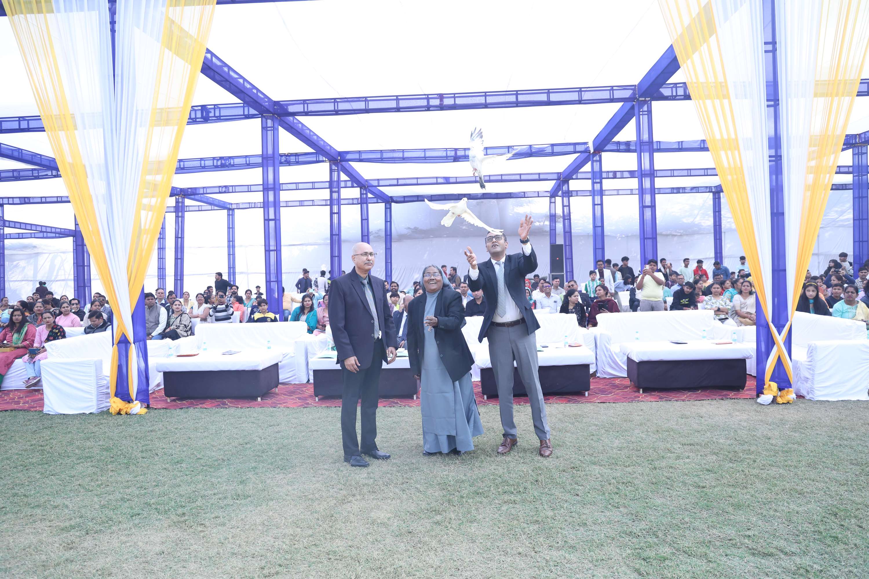 Jean Thomas declared open the PT Display event by releasing white pigeons.