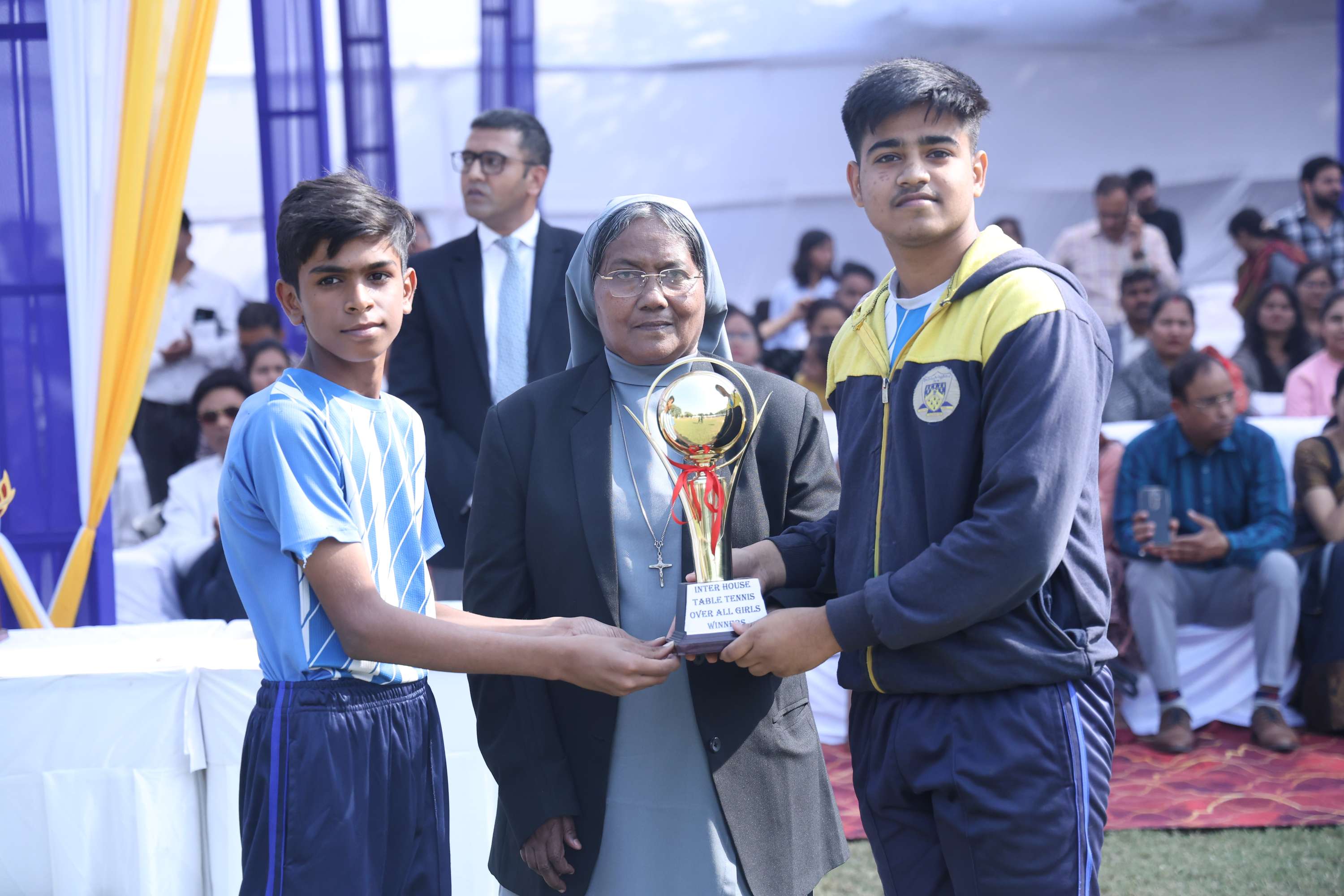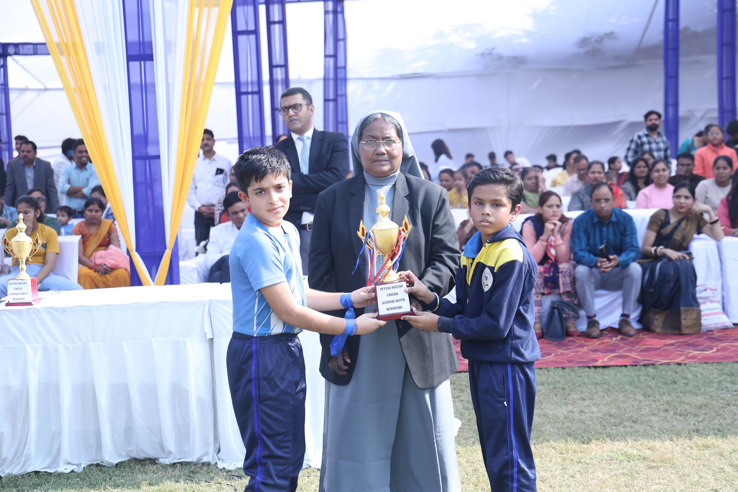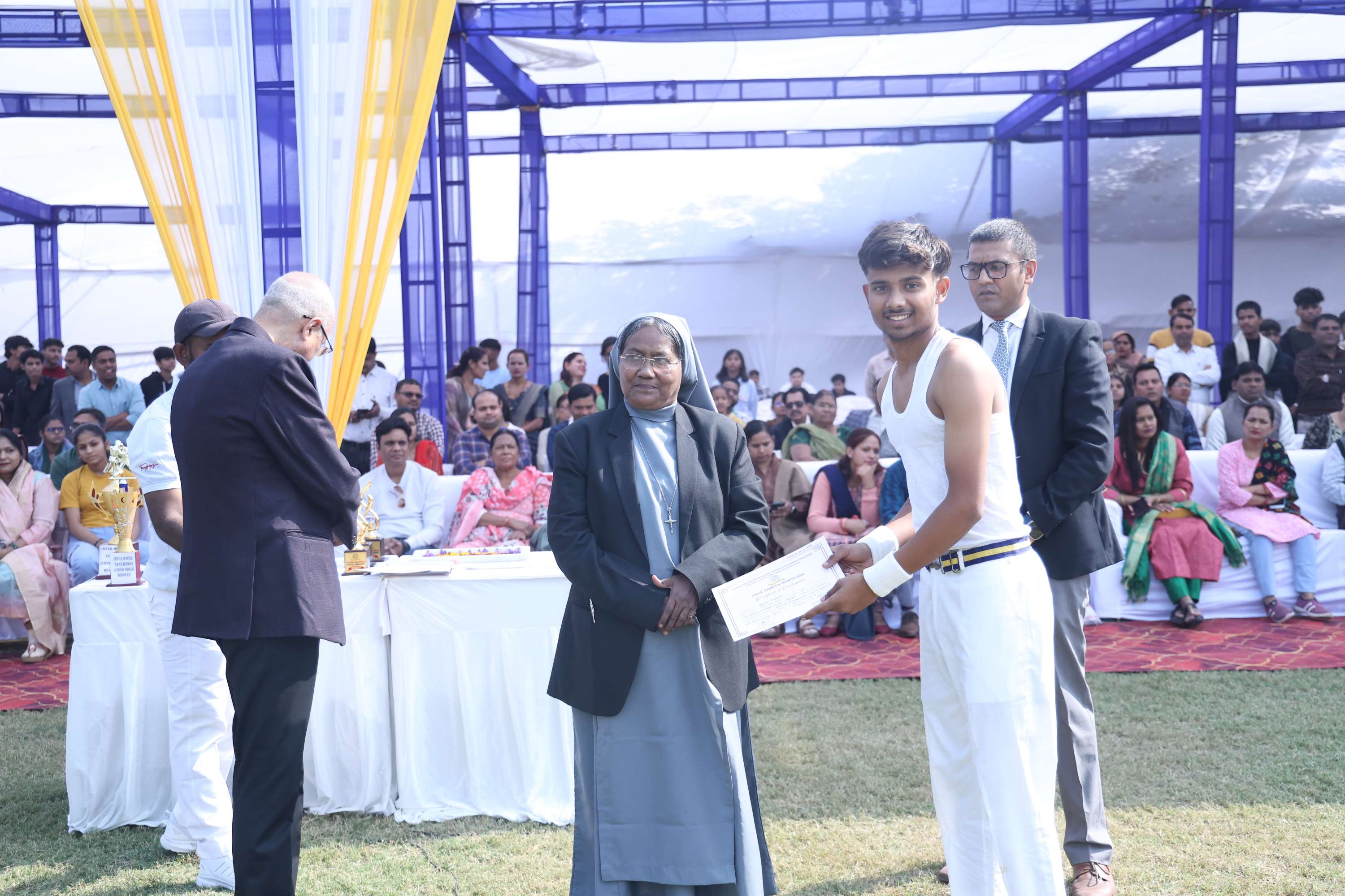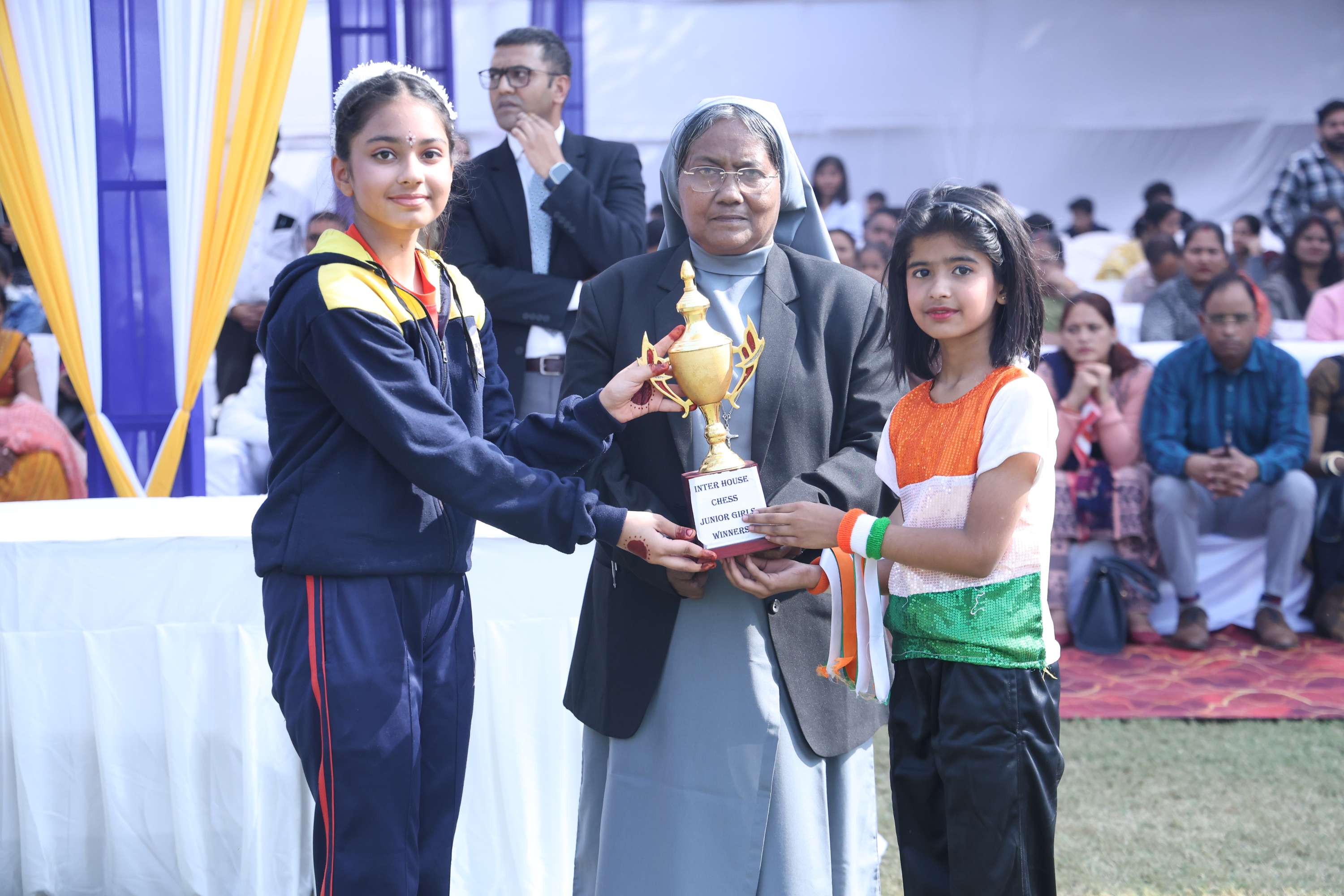 The field was filled with vibrant colours and smiles of our dear students. In the end we celebrated the efforts and achievements of our young athletes with medals and trophies. The prize distribution for winners was done by the chief guest and the event culminated with the closing speech of the chief guest. Vote of Thanks was given by the Secretary Mr. Akshay Jeremiah followed by the National Anthem.