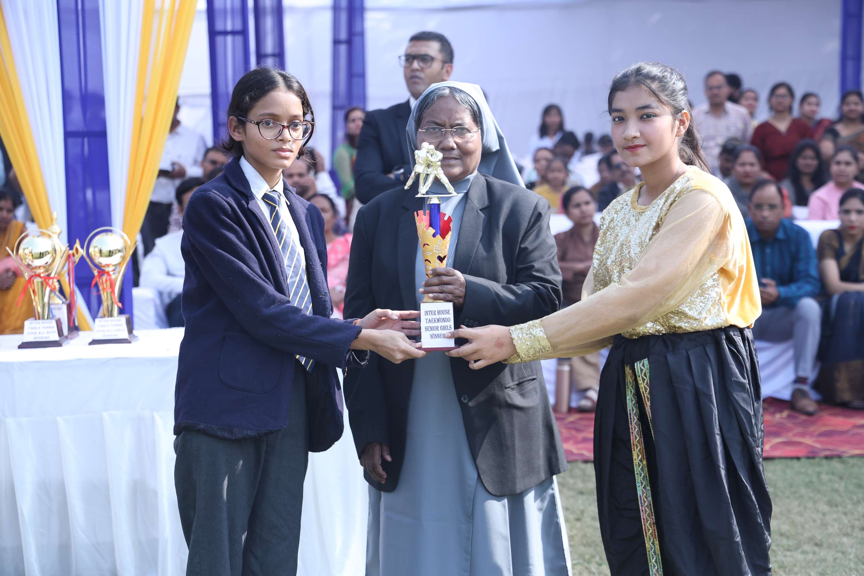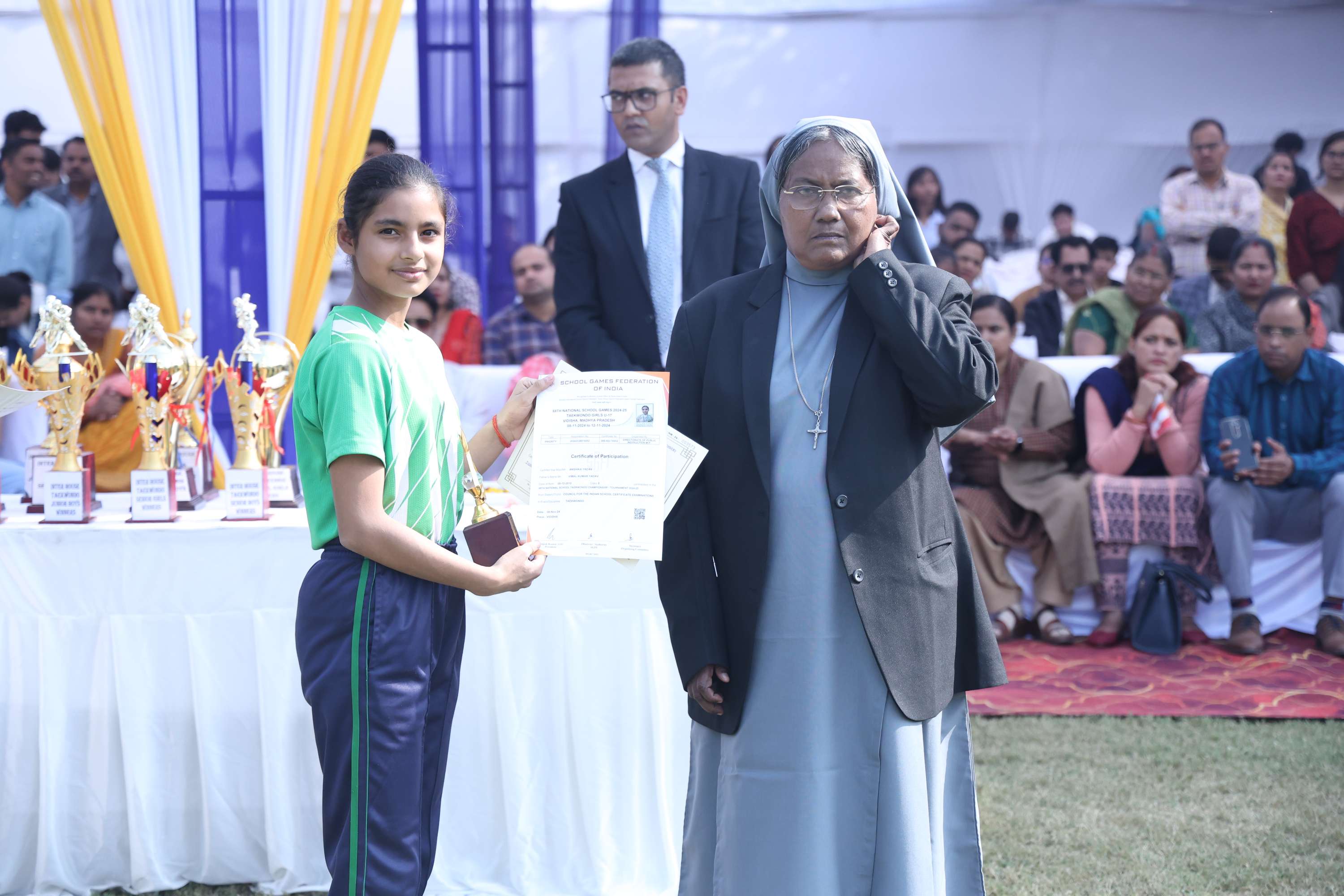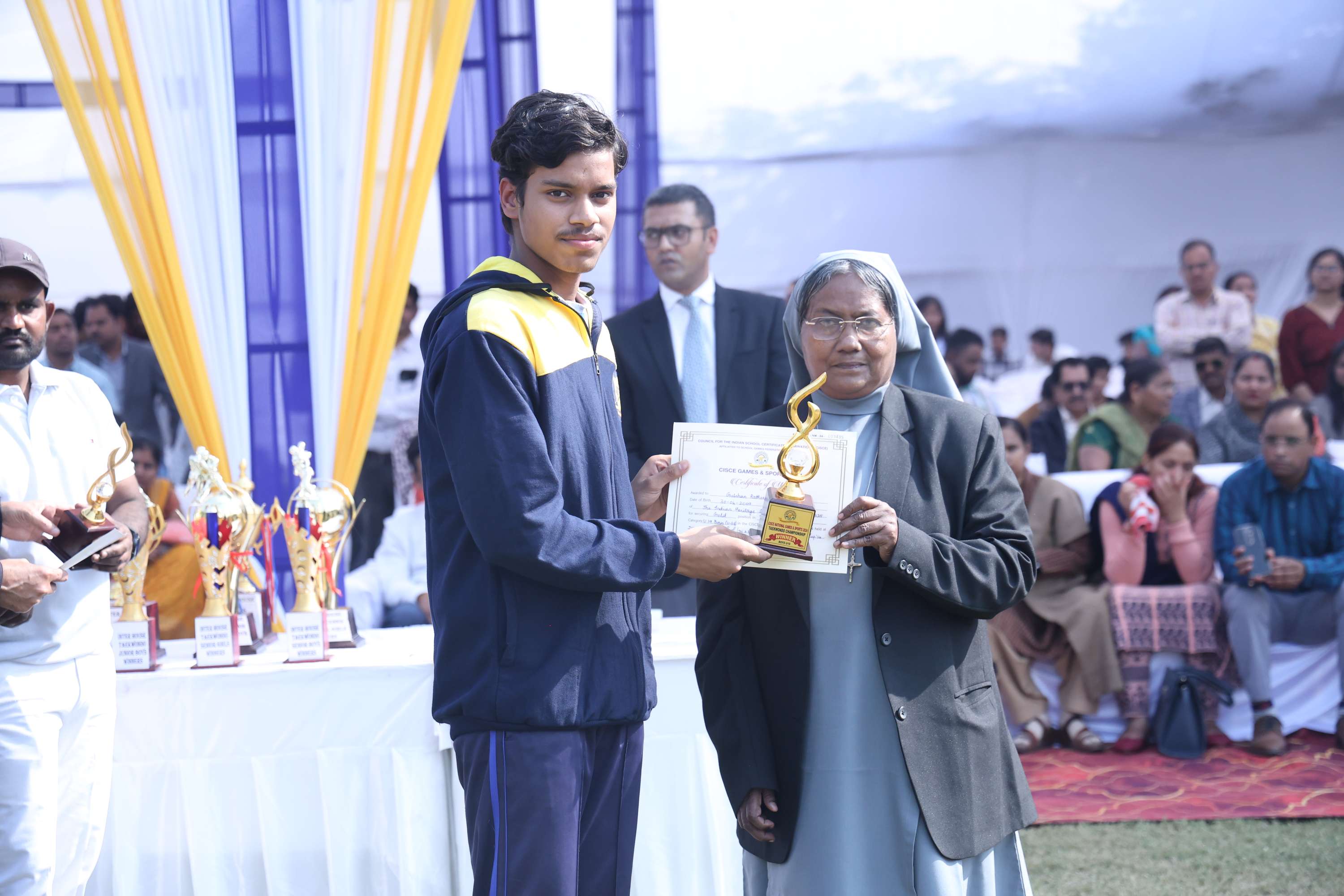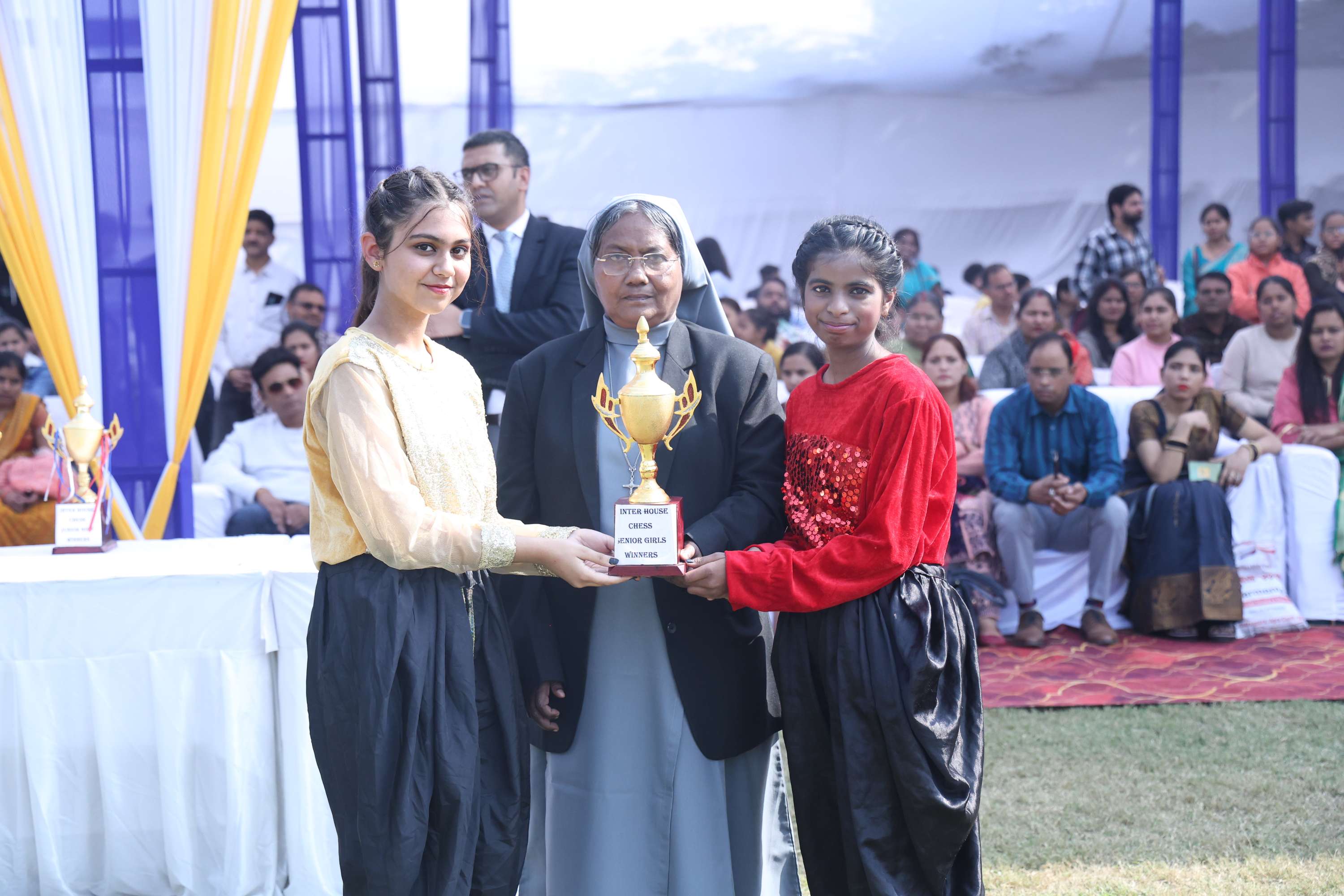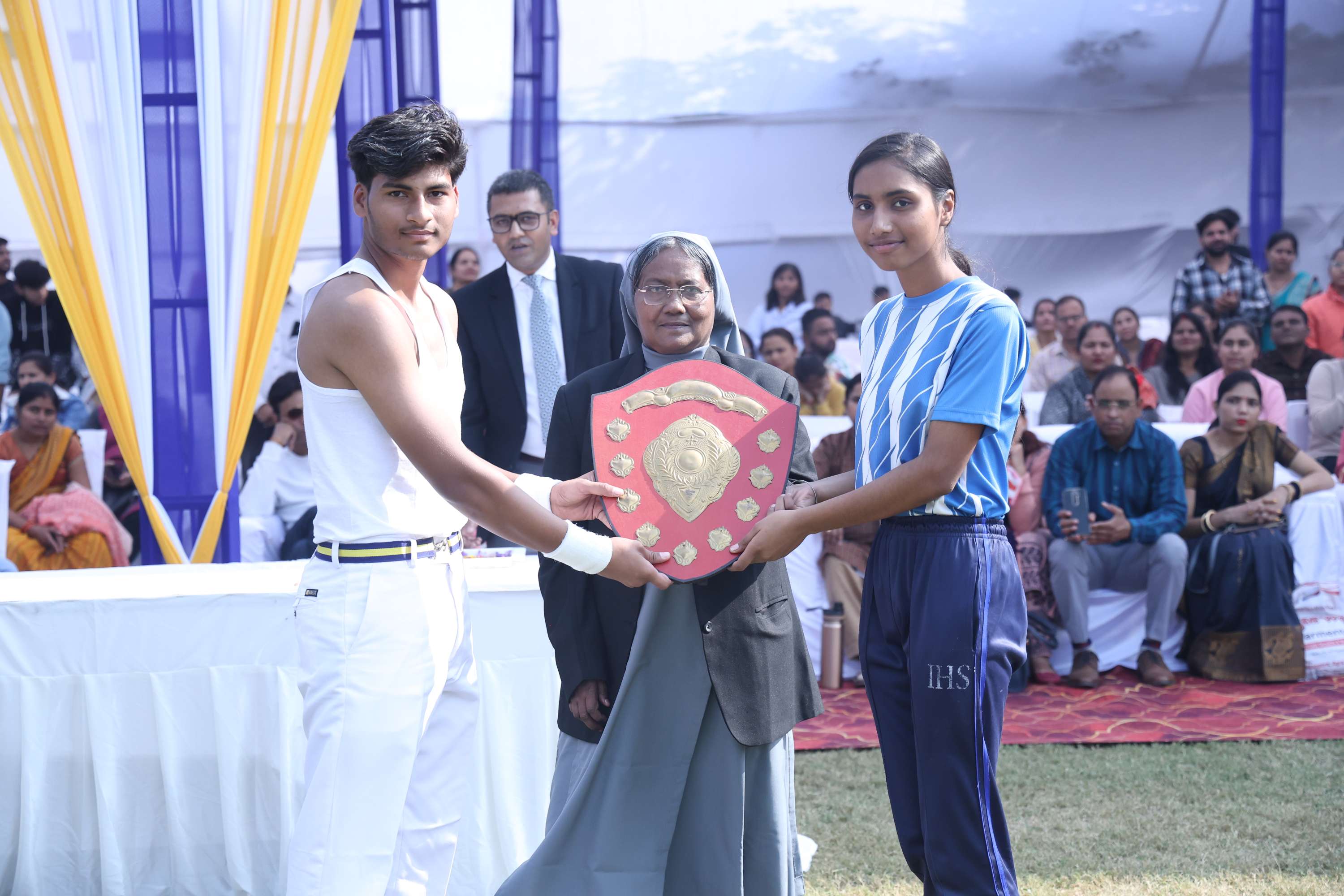 The field was filled with vibrant colours and smiles of our dear students. In the end we celebrated the efforts and achievements of our young athletes with medals and trophies. The prize distribution for winners was done by the chief guest and the event culminated with the closing speech of the chief guest. Vote of Thanks was given by the Secretary Mr. Akshay Jeremiah followed by the National Anthem.