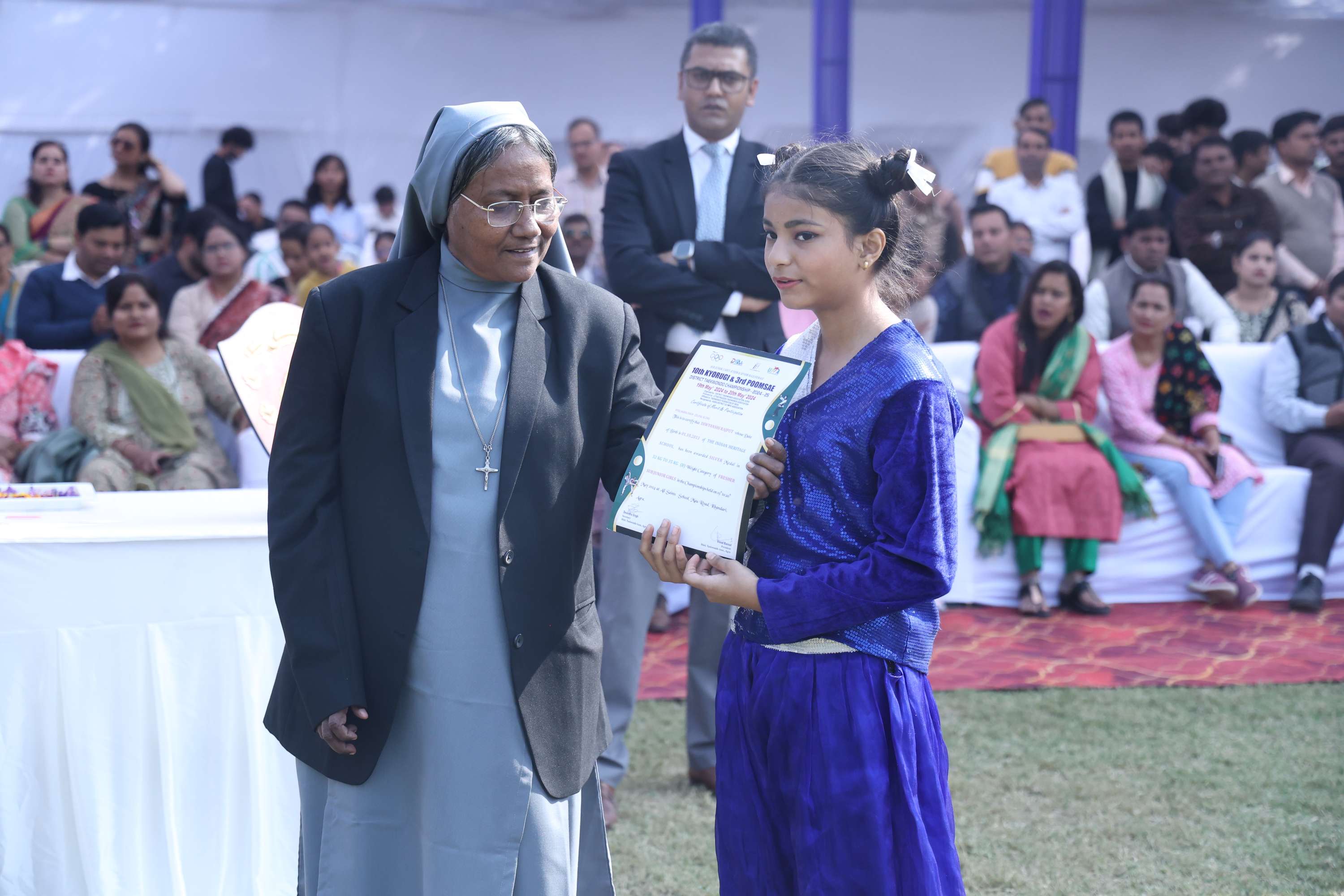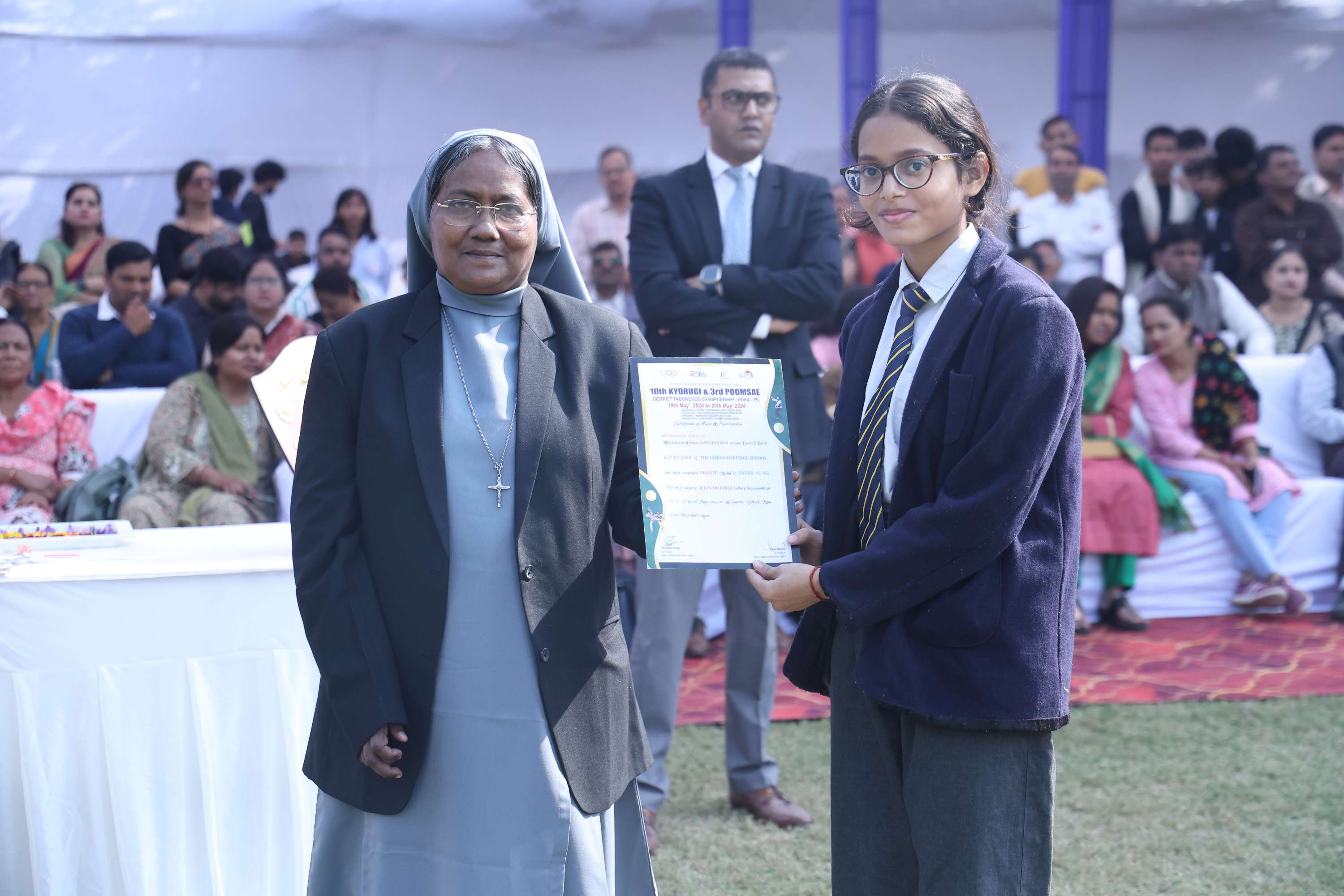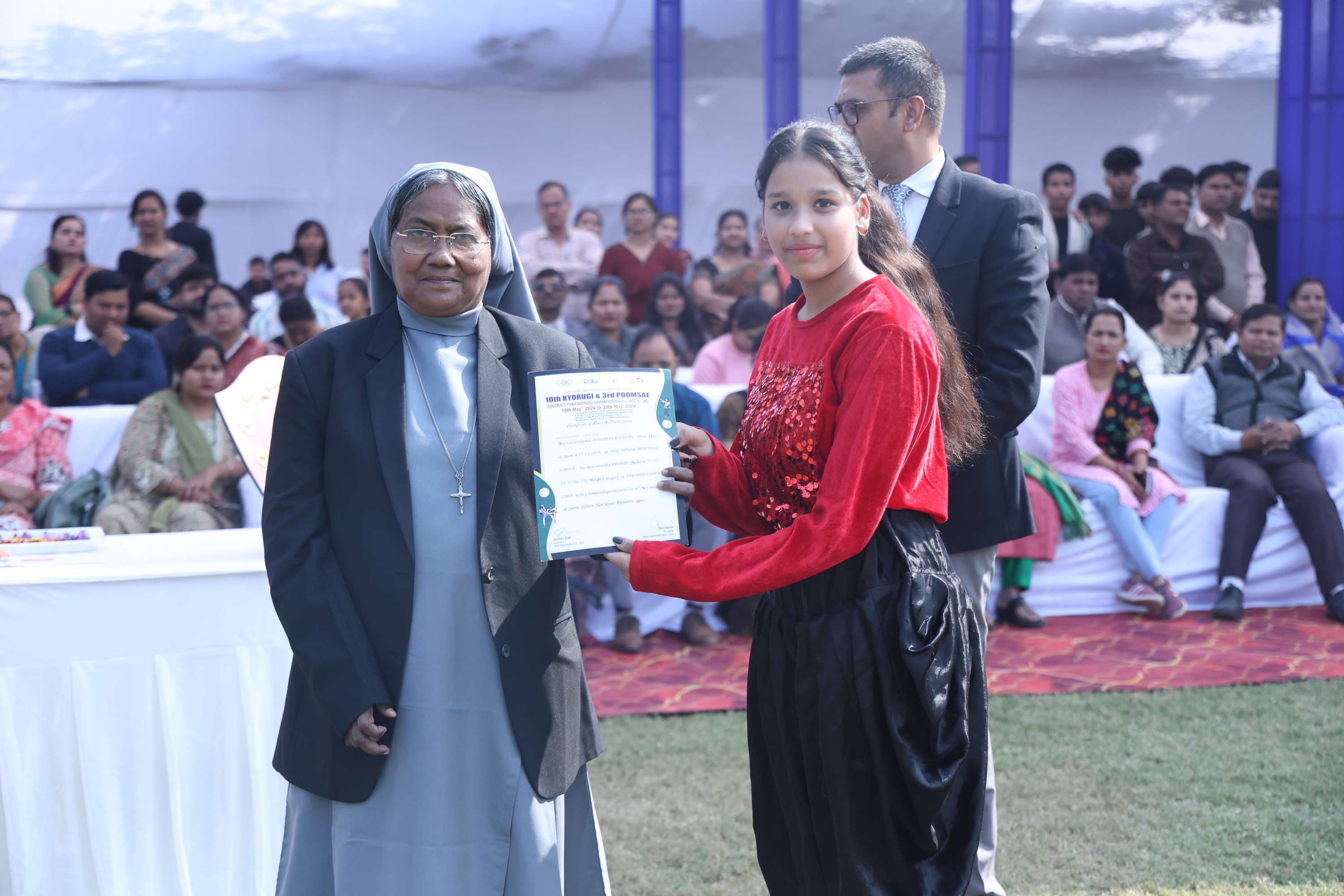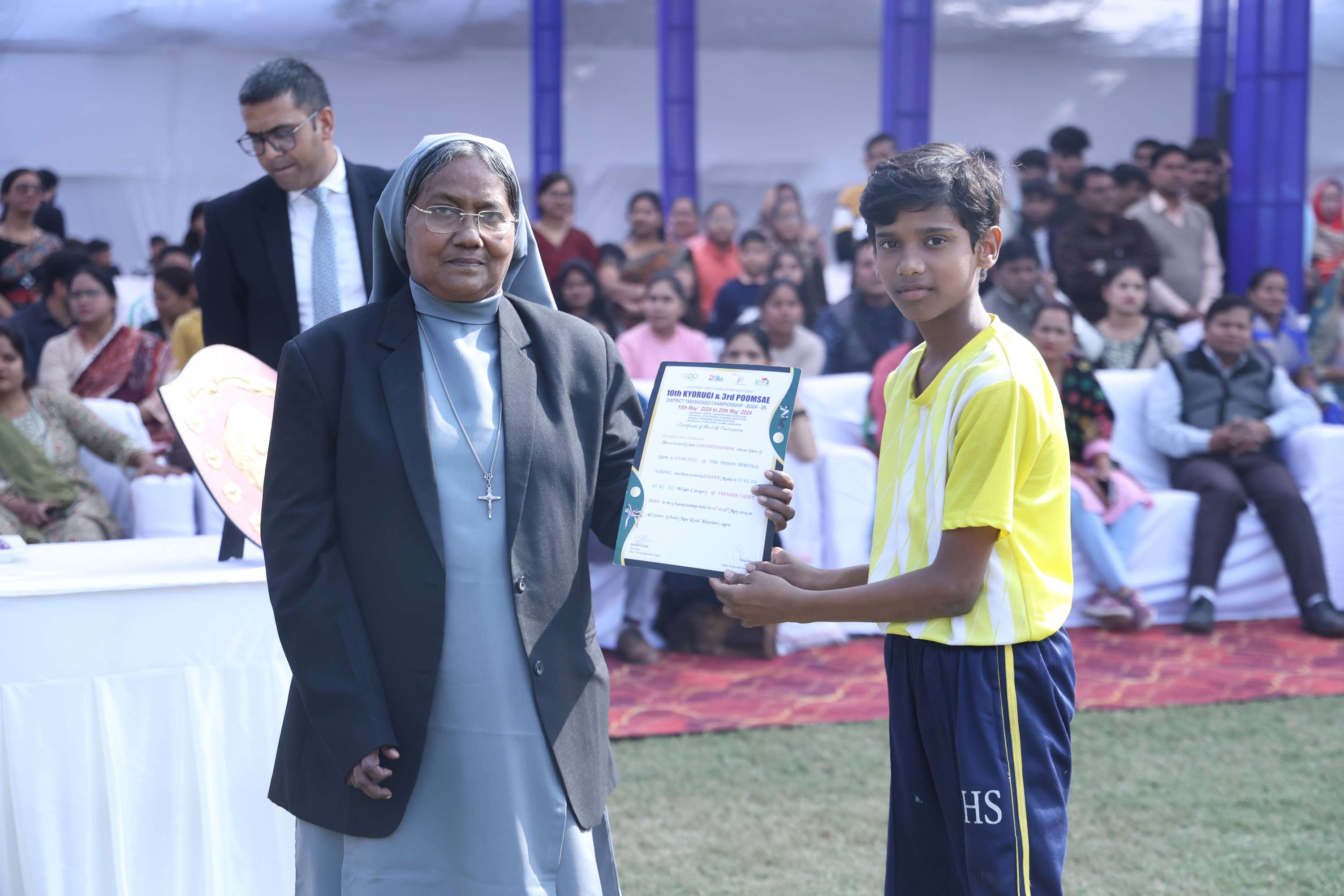 The field was filled with vibrant colours and smiles of our dear students. In the end we celebrated the efforts and achievements of our young athletes with medals and trophies. The prize distribution for winners was done by the chief guest and the event culminated with the closing speech of the chief guest. Vote of Thanks was given by the Secretary Mr. Akshay Jeremiah followed by the National Anthem.